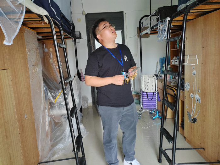 辅导员老师们对公寓安全隐患、卫生情况、水电维修等问题逐一进行了排查。在公寓安全隐患方面,辅导员老师们细心检查了各项设施,重点排查了公寓中可能存在的用电与消防安全问题,并汇总宿舍内设施设备损坏情况。在卫生方面,辅导员老师们认真检查了各个楼层及宿舍的垃圾是否已经清理干净,要求学生离校关好门窗,嘱咐学生注意并保证宿舍安全和假期自身安全。