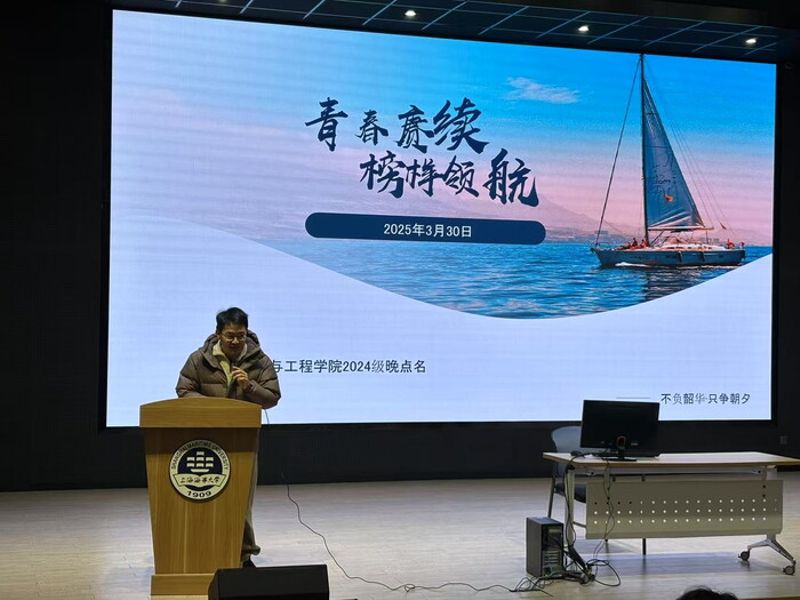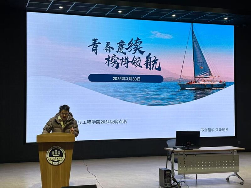 为引导同学们树立明确的学业与职业规划目标,提高专业认同、激发成长动力,2025年3月30日晚,海洋科学与工程学院2024级本科生“青春赓续,榜样领航”主题晚点名活动顺利开展。此次晚点名由辅导员许玲老师主持,特别邀请了2020级校友瞿曦贤主讲,为在校生分享成长经验。