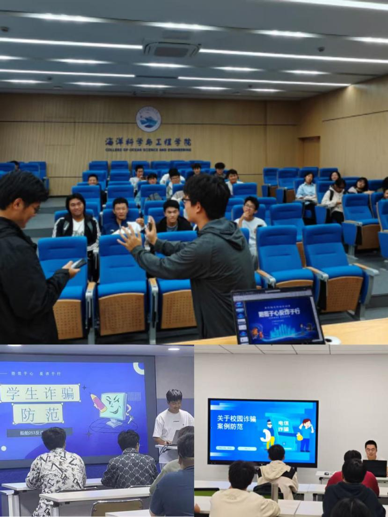 为进一步增强2025级新生的防诈骗意识,筑牢校园安全防线,近日,海洋科学与工程学院组织各班班长面向大一新生,以班级为单位开展了一场内容丰富、形式多样的防诈骗专题宣传活动。