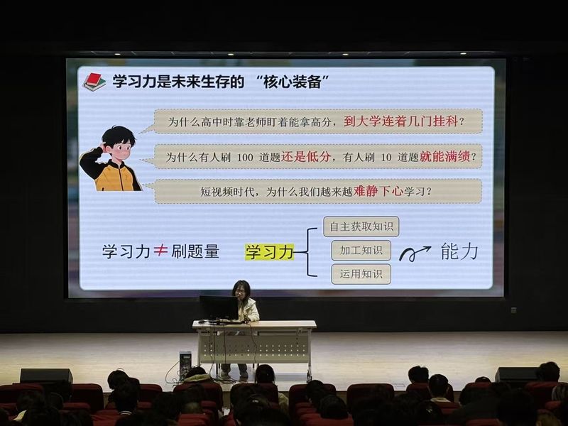 活动从大学阶段普遍存在的“陡坡效应”切入,深入剖析了学生在学习动力、效率与方法上的常见困境。朱老师以“兴趣、成就感、目标感”为三大内驱力来源,阐述了如何激活个人学习的深层动力,并结合“假努力”典型案例,引导学生警惕形式化、低效化的学习状态,倡导学生基于个人特点制定针对性提升策略。为帮助学生将理论转化为行动,朱老师系统介绍了“番茄工作法”“5秒启动法则”等时间管理工具,并分享了学习空间营造与任务规划的具体技巧,鼓励学生从克服拖延、强化专注做起,逐步建立系统、可持续的自主学习体系。