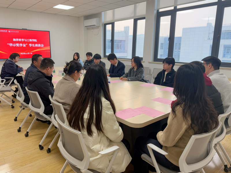 2025年12月17日,“华示奖学金”学生座谈会在海科楼408会议室顺利举行。华示(上海)实业有限公司总经理张辉、中国外运华东有限公司部门经理季诚、学院副院长巢志明、港航系副主任唐鹏及学生代表参会。会议由学院党委副书记董超群主持。
