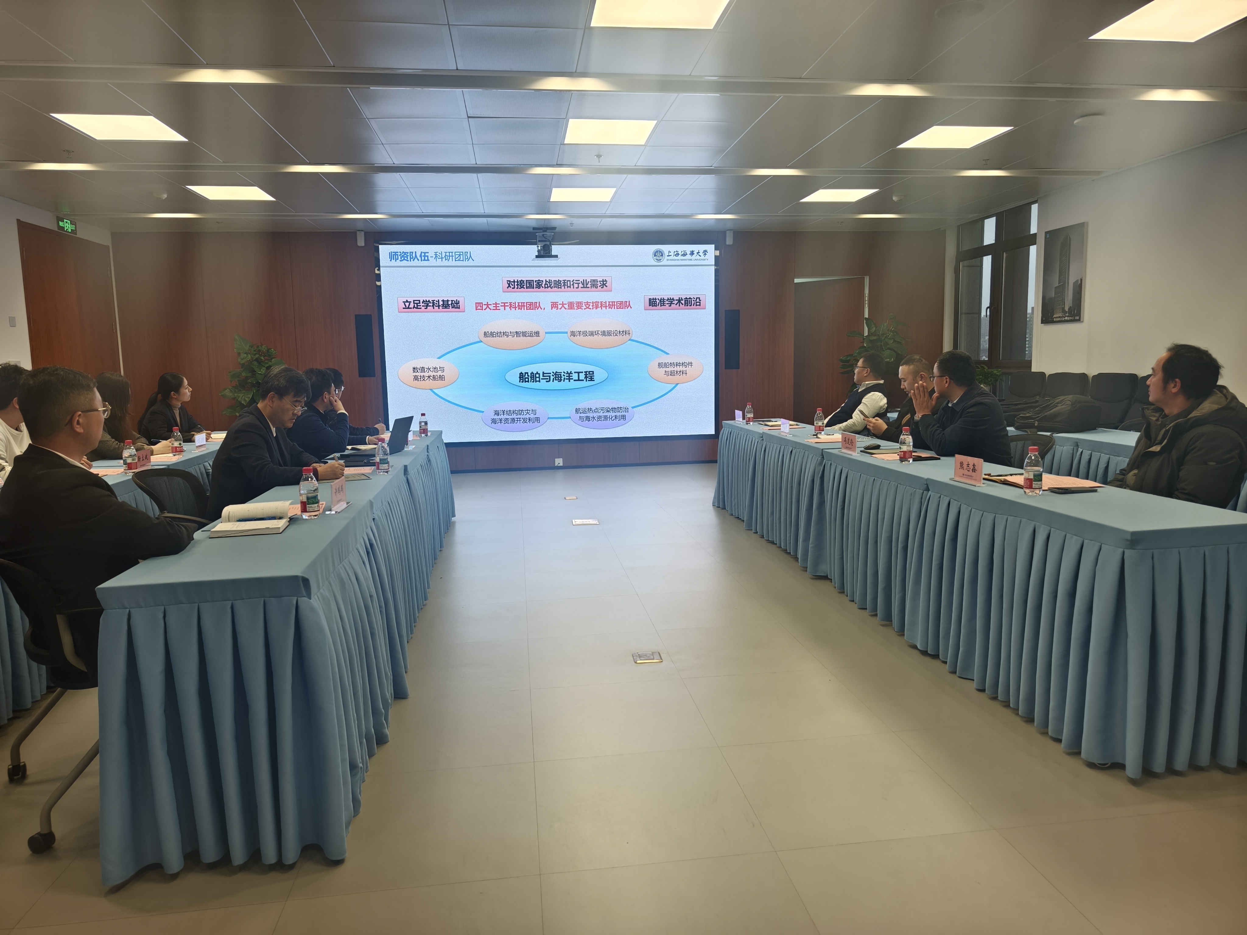 学院船舶与海洋工程系主任及教师代表参与交流。