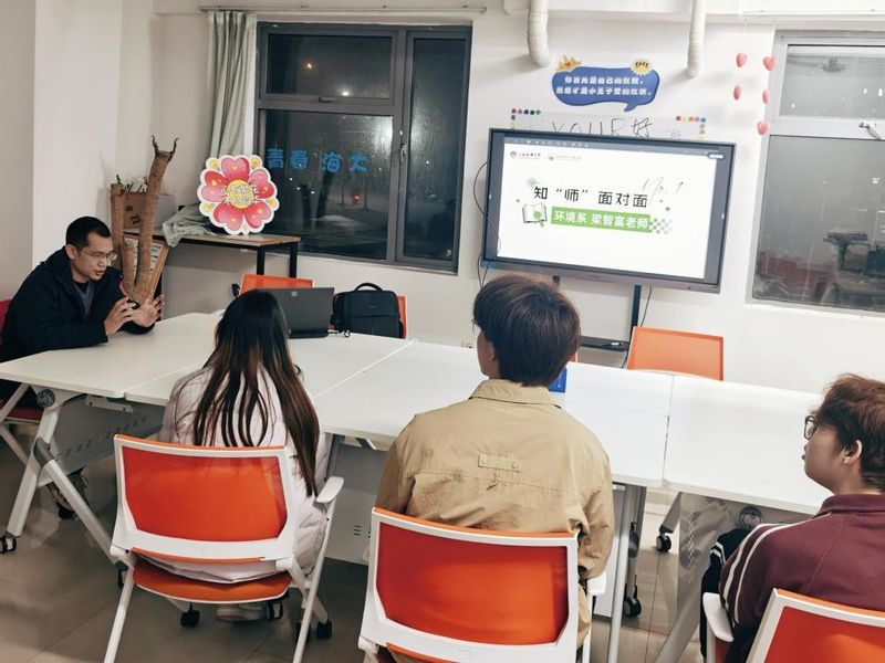 为进一步深化“一站式”学生社区育人功能,搭建师生常态化交流平台,3月30日,海洋科学与工程学院于60号楼活动室开展新学期首期“知‘师’面对面”坐班答疑活动,环境系梁智富老师应邀主讲。