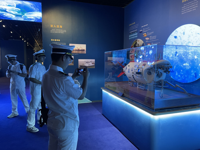 After the opening ceremony, the students also visited the themed exhibition together. Amid the rich exhibits and multi-sensory experiences combining sound, light and electricity, they felt the brilliant achievements made in China's contemporary marine scientific research and deep diving undertakings, understood the harmonious coexistence between humans and the ocean, inspired their passion and ambition to love and explore the ocean, strengthened marine awareness education, and attended a vivid themed league class.