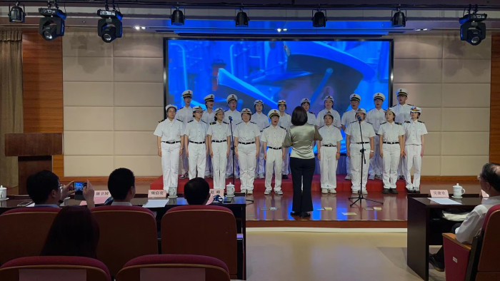 On June 13th, the "Contemporary China Marine Equipment Series Exhibition • Part 2" - "Exploring the Deep Blue: China's Marine Scientific Research and Deep Diving Exhibition", guided by the Shanghai Municipal Transportation Commission and Shanghai Municipal Oceanic Bureau and co-hosted by the China Maritime Museum and Shanghai Ocean Management Affairs Center, was successfully launched. The Student Choir of the College of Ocean Science and Engineering was invited to attend the opening ceremony and performed I Love This Blue Ocean. The sonorous melody expressed the enthusiasm and firm confidence of the college's students in devoting themselves to the cause of building a maritime power, and was well-received by all present.