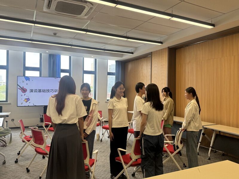 At the beginning of the event, the unique ice-breaking session quickly shortened the distance between the students. Fun Self-Introduction requires each student to introduce themselves with 1 adjective 1 interest and enhance interaction by repeating the previous message. The game of two truths and one falsehood made the scene laugh continuously, which effectively relieved the tension. In the core training link, the course sets up three modules: voice, body, and eyes. The students mastered the scientific vocal method through abdominal breathing exercises, and experienced the use of voice in different occasions in the volume control game. The Superman Pose training helped the trainees find a confident posture, while the 3-second eye contact rule effectively overcame the problem of eye dodging. Mini presentations in action. Students choose topics from a well-designed topic bank and give a 2-minute impromptu speech on topics close to campus life, such as what I want to recommend the most and 3 survival tips I give to freshmen. Through peer assessment and mentoring, each student received targeted suggestions for improvement.