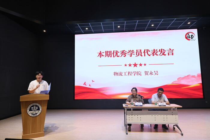 outstanding student representative from the College of Logistics Engineering, delivered a speech, sharing his learning insights