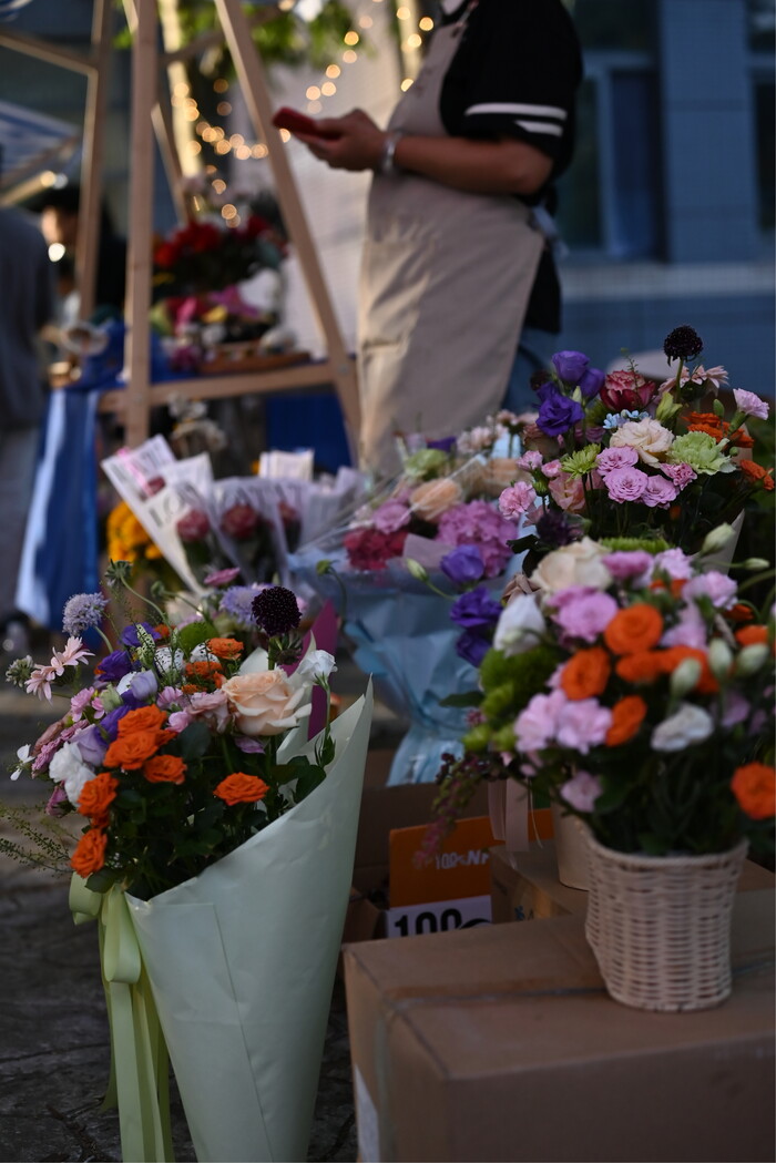 At the entrance of the garden party, a booth surrounded by fresh flowers exuded a faint fragrance. These flowers, carrying blessings, sparked a rush as soon as they went on sale. Many students carefully selected flowers for their teachers and roommates; some boys even bought pink roses with blushing cheeks to give to the girls they admired. In the cultural and creative charity sale area, custom-made maritime teddy bears and exquisite commemorative badges became the most sought-after graduation souvenirs. All proceeds from the charity sale will be donated to the Lingang Nursing Home to bring warmth to the elderly there. This youth kindness is the gentlest gift that the students of the College of Ocean Science and Engineering leave to the campus.