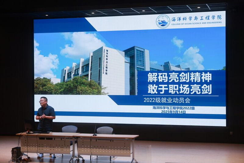 To effectively advance employment work and assist graduates in achieving high-quality and full employment, on September 14th, the College of Marine Science and Engineering held an employment mobilization meeting with the theme of "Decoding the Spirit of the Sword and Daring to Stand Out in the Workplace". The meeting was led by counselor Lei Mengyu, and all undergraduate students of the class of 2026 attended.