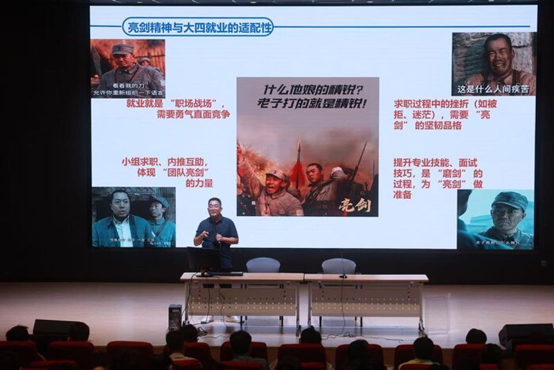 At the meeting, Teacher Lei Mengyu analyzed the employment situation based on actual data, introduced the overall scale of the 2026 batch of college graduates across the country, and elaborated on the employment rate, the proportion of postgraduate entrance examination and further education, and the distribution of popular employment units of the 2025 batch of graduates from various majors in the college, providing an objective reference for students to determine their career directions. Subsequently, Teacher Lei used the Anti-Japanese War TV drama "Sword Out" as an introduction to deeply interpret the core connotation of "workplace Sword out" in the new era. He guided students to establish a positive employment attitude from four dimensions: courage, determination, collaboration, and progress. He also provided a "battle guide" covering the entire process from job application preparation, resume submission, interview skills to offer selection. Finally, Teacher Lei elaborately introduced the school's support measures in terms of employment guidance, resource connection and assistance for those in difficulty.