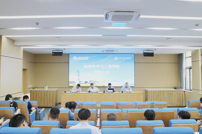On the afternoon of September 24th, the College of Marine Science and Engineering held a meeting for all faculty and staff for the 2025 autumn semester. The meeting comprehensively summarized the achievements of the work this year, deeply analyzed the current situation and challenges faced by the college's development, and made arrangements for the key tasks of the new semester. Wang Weiyi, the Party Secretary of the college, Feng Daolun, the Deputy Party Secretary and President, Dong Chaoqun, the Deputy Party Secretary, and Chao Zhiming, the Vice President, attended the meeting. Secretary Wang Weiyi presided over the meeting.