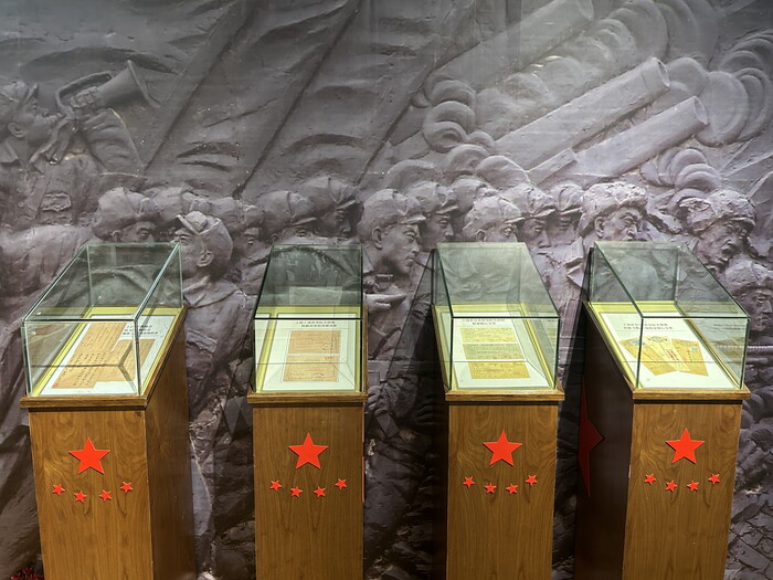 The Shanghai Memorial Hall of the Chinese People's Volunteers has its name inscribed by General Chi Haotian, the former vice chairman of the Central Military Commission and minister of National Defense. The names include: "Decision to Send Troops" and "Resisting the United States and Aiding Korea". Confront powerful enemies head-on and engage in a life-and-death struggle. Show national prestige and return victorious. A heroic ode, resounding and inspiring; The children of Fengxian, their glory stained with blood; The six major sections of "Remembering History and Keeping the Spirit Alive" and the Memorial Square of the Chinese People's Volunteers.