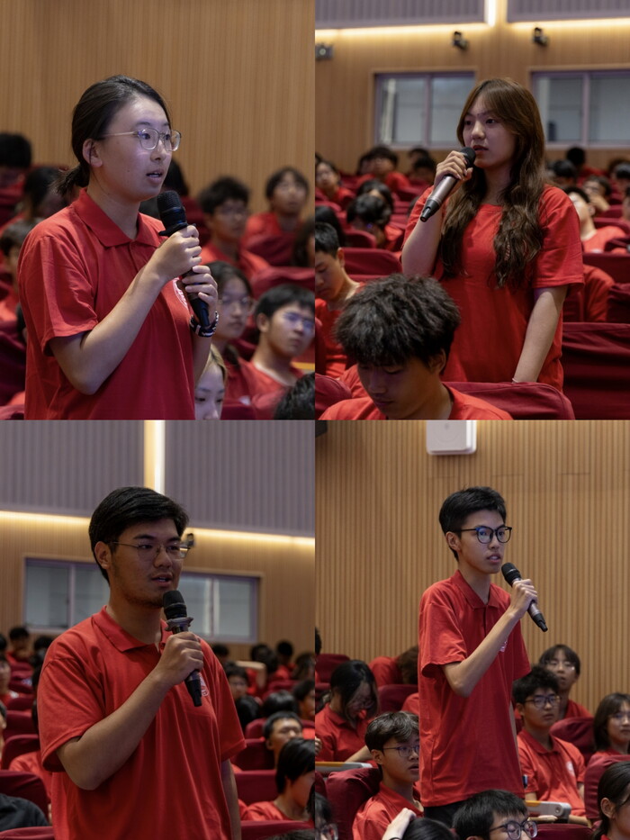 During the roundtable discussion session, Dean Feng Daolun, Vice Dean Chao Zhiming, alumni representative Xu Sihao, and 2022-level student representative Wen Lie, as interview guests, conducted an open discussion with the new students. In the interview, Teacher Chao Zhiming shared his struggle experience from a young scholar to a scientific research leader, encouraging the students to integrate the "small self" into the "big self" and truly write their theses on the land of the motherland. Alumni Xu Sihao, based on his own career development, suggested that students should seize the tide of the times' development, continuously learn cutting-edge knowledge, so as to maintain core competitiveness in the industry. Student Wen Lie, combining his experience in university, shared tips and methods for study and life, advising everyone to take more actions, reduce anxiety, and strive to make their university life more wonderful. In the free question-and-answer session, the guests and new students had discussions on various aspects such as academic research, industry development, employment prospects, and study life, with a relaxed and pleasant atmosphere. At the end of the roundtable interview session, Dean Feng made a summary and comments, and sent a message to the new students, urging them to be strict with themselves, take the initiative to learn, achieve the unity of knowledge and action, and strive to become new people of the era with ideals, responsibilities, and achievements.