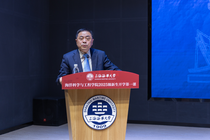 Professor Wang Weiyi, Secretary of the Party Committee of the College, gave the first lesson of the new semester to freshmen under the theme of "Gathering Waves in Marine Science, Sailing Far with the Sea". Starting with the college's micro-film "Heading to the Poles", Secretary Wang Weiyi elaborated from three dimensions: China's shipping history, the September 3rd Military Parade, and the preservation of traditions and innovation in Chinese culture. Through vivid cases and detailed data, he systematically talked about the centennial changes of China's shipping industry, the magnificent development history of the People's Liberation Army Navy of New China, and the strength of Chinese manufacturing demonstrated by the "Xuelong" icebreaker. He expounded on the unprecedented grand occasion of the September 3rd Military Parade and the confidence in building a strong country and a strong military it embodies, and depicted the leapfrog development of China's military strength. Combining with the recently popular film "Little Monsters of Langlang Mountain", he shared his unique thoughts on inheriting and innovating Chinese culture. He encouraged the students to draw the ambition of serving the motherland from China's shipping history, feel the responsibility and confidence of a military power from the September 3rd Military Parade, and cultivate an open and inclusive mind of marine civilization from the preservation of traditions and innovation in Chinese culture. At the end of the course, Secretary Wang Weiyi profoundly explained the pioneering and guarding spirit contained in the two characters "Mu Hai" (managing the sea), encouraging all freshmen to inherit the spirit of scientists, dare to surpass themselves, aspire to become future "masters of marine engineering", and contribute their splendid youth to the protection and development of the "blue territory" in the new era.