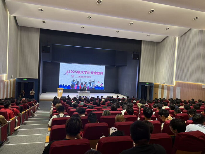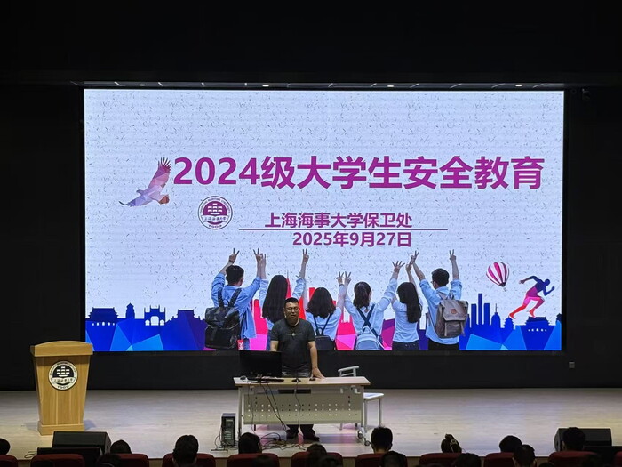 To strengthen the awareness of campus safety among the college students and improve their ability to identify and deal with various fraud behaviors, on the afternoon of September 27, all grades of the College of Marine Science and Engineering held a safety education-themed evening roll call activity in Bangjian Lecture Hall, with Mr. Liu Zhen from the Security Department serving as the keynote speaker.