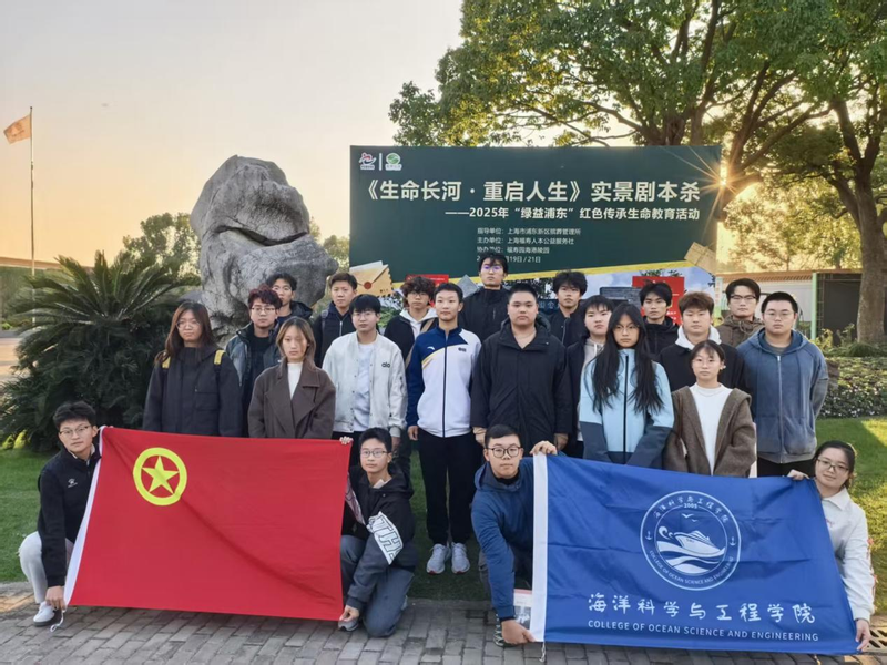 To continuously deepen the connotation of life education and innovate the form of psychological education, on November 21st, the College of Marine Science and Engineering led over twenty representatives of the Youth League School students to Shanghai Fushouyuan Haigang Cemetery to carry out the second phase of the "Long River of Life · Restarting Life" immersive real-scene murder mystery game and psychological theme education activity. The event, with an original real-scene murder mystery game as its medium, guided young students to complete a deep exploration of life, choice and value in a special humanistic field.