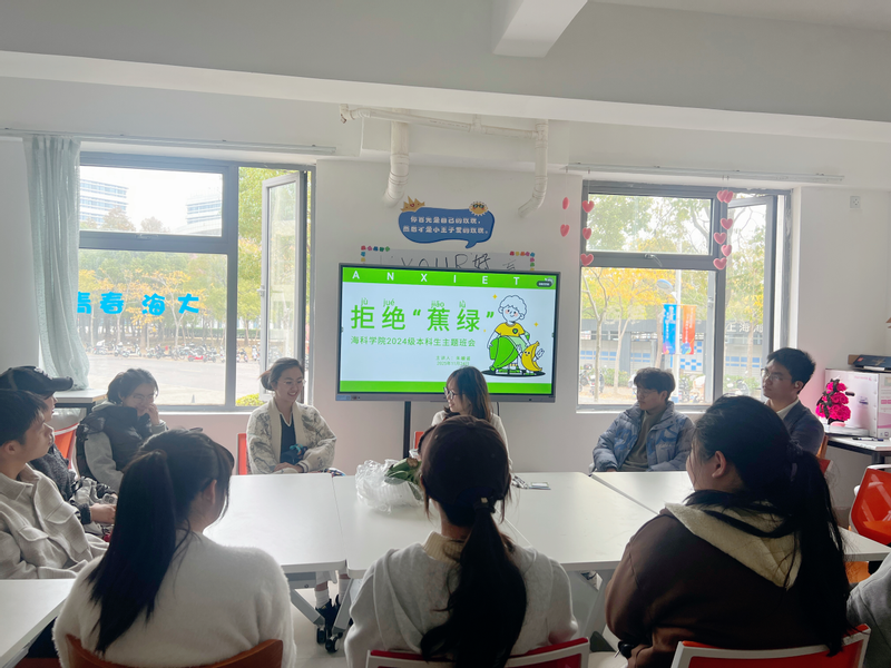 To thoroughly implement the fundamental task of fostering virtue and nurturing talent, enhance mental health education for college students, and improve their psychological adjustment capabilities, on the morning of November 24th, the College of Marine Science and Engineering successfully held a psychological theme activity titled "Refuse 'Banana Green', Reconcile with Emotions" in the "one-stop" student community. This class activity was led by the counselor Zhu Diyao. Through a combination of special topic explanations, interactive sharing and group support, it guided students to scientifically understand anxiety and actively deal with the pressure of growth.